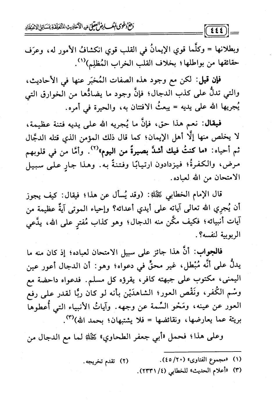 كتاب دفع دعوى المعارض العقلي عن الأحاديث المتعلقة بمسائل الاعتقاد