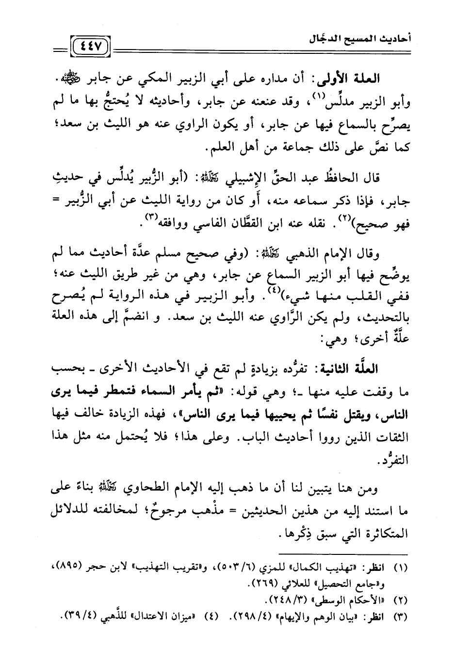 وقال الإمام الذهبي - رحمه الله -: (وفي صحيح مسلم عدّة أحاديث مما لم يوضّح فيها أبو الزبير السماع عن جابر، وهي من غير طريق الليث عنه؛ ففي القلب منها شيء) . (¬٤) وأبو الزبير في هذه الرواية لم يُصرح بالتحديث، ولم يكن الرَّاوي عنه الليث بن سعد. و انضمّ إلى هذه العلة علّةٌ أخرى؛ وهي: