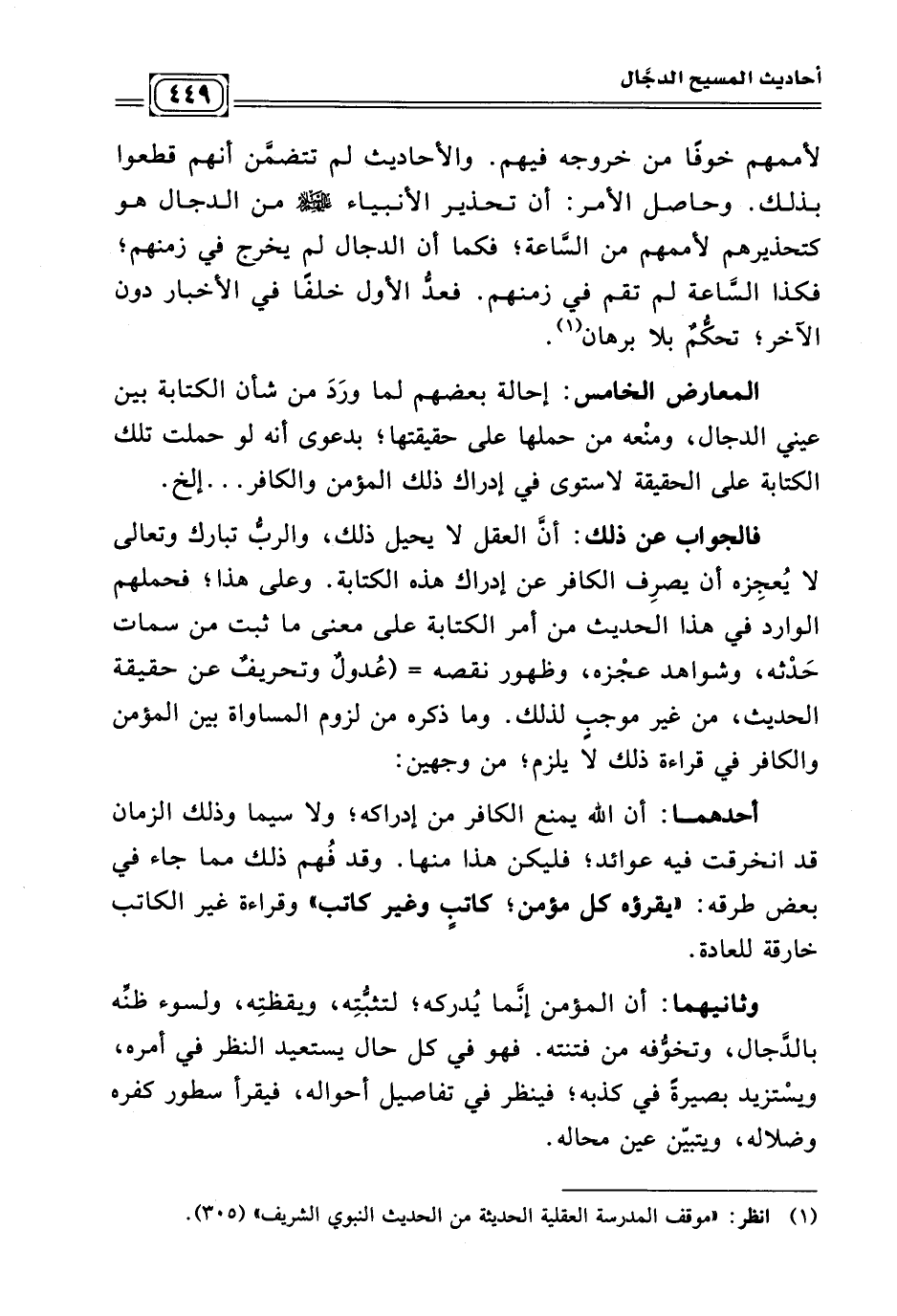 (¬١) انظر:"موقف المدرسة العقلية الحديثة من الحديث النبوي الشريف" (٣٠٥) .