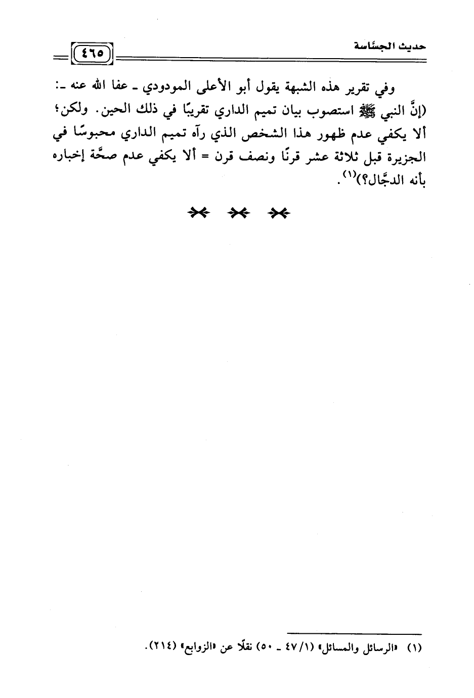 (¬١) "الرسائل والمسائل" (١/ ٤٧ - ٥٠) نقلًا عن"الزوابع" (٢١٤).
