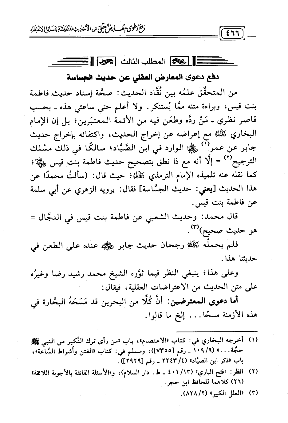 المطلب الثالث: دفع دعوى المعارض العقلي عن حديث الجساسة: