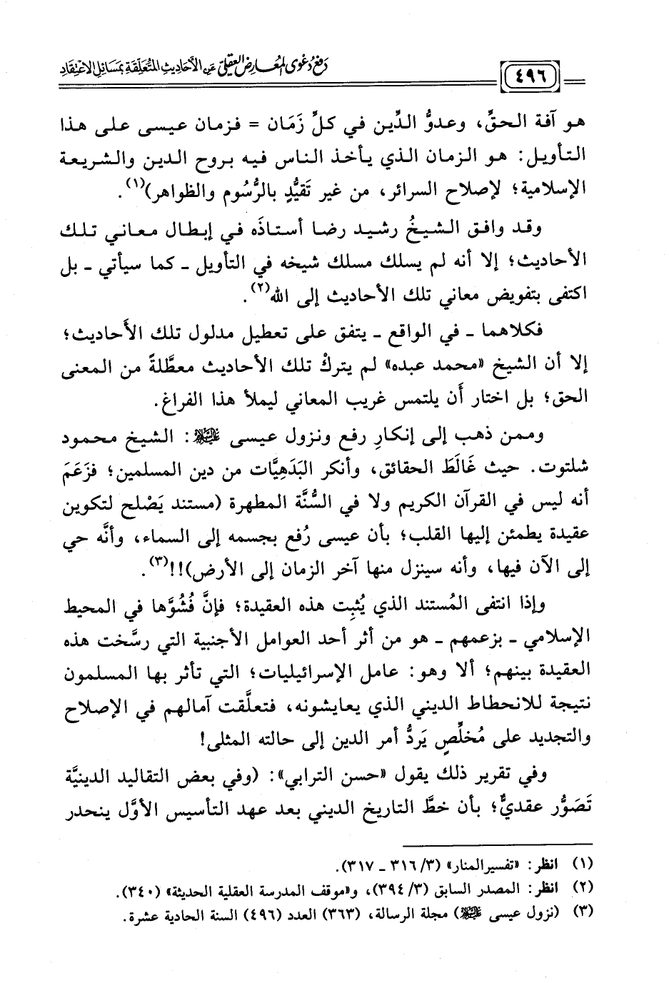 (¬٢) انظر:"المصدر السابق" (٣/ ٣٩٤) , و"موقف المدرسة العقلية الحديثة" (٣٤٠)