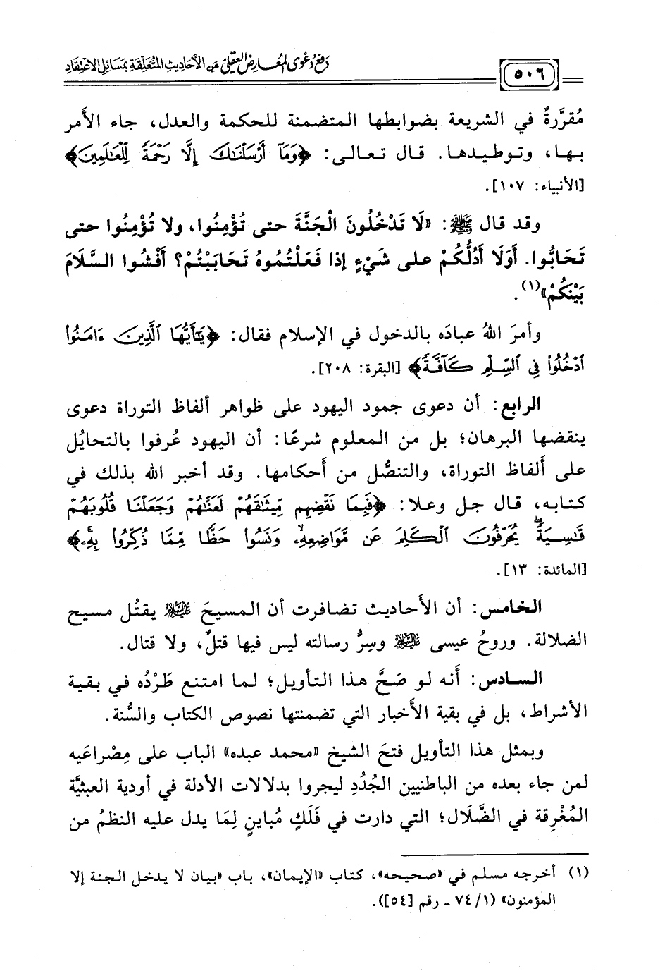 كتاب دفع دعوى المعارض العقلي عن الأحاديث المتعلقة بمسائل الاعتقاد