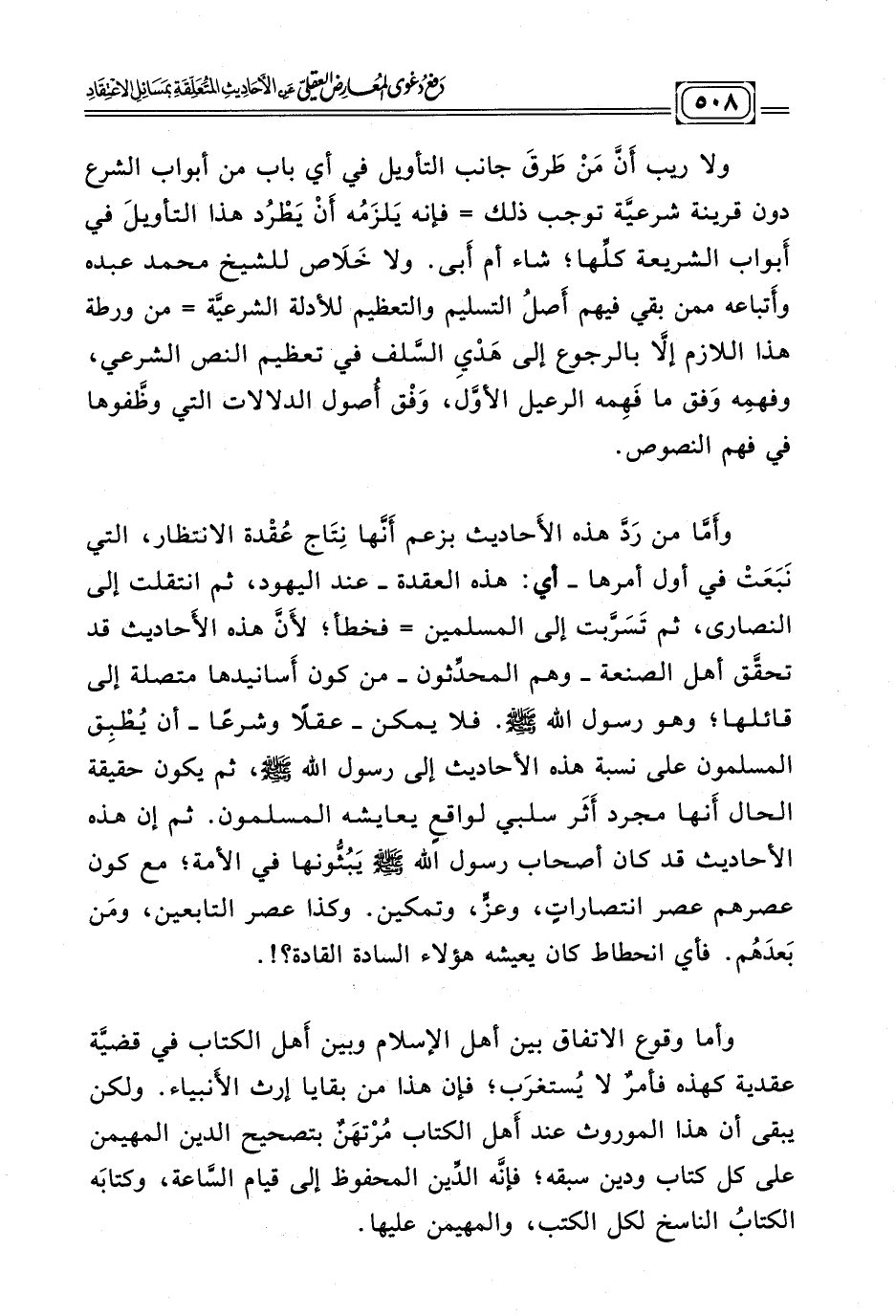كتاب دفع دعوى المعارض العقلي عن الأحاديث المتعلقة بمسائل الاعتقاد