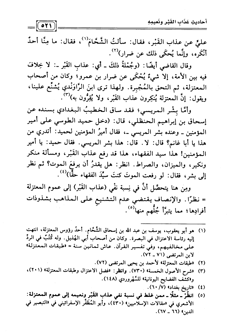 (¬٥) انظُرْ - مثلًا - ممن غلط في نسبة نفي عذاب القَبْر ونعيمه إلى عموم المعتزلة: الأشعري في"مقالات الإسلاميين" (٤٣٠)،وأبو المُظَفَّر الإسفرائييني في"التبصير في الدين" (٦٦ - ٦٧) .