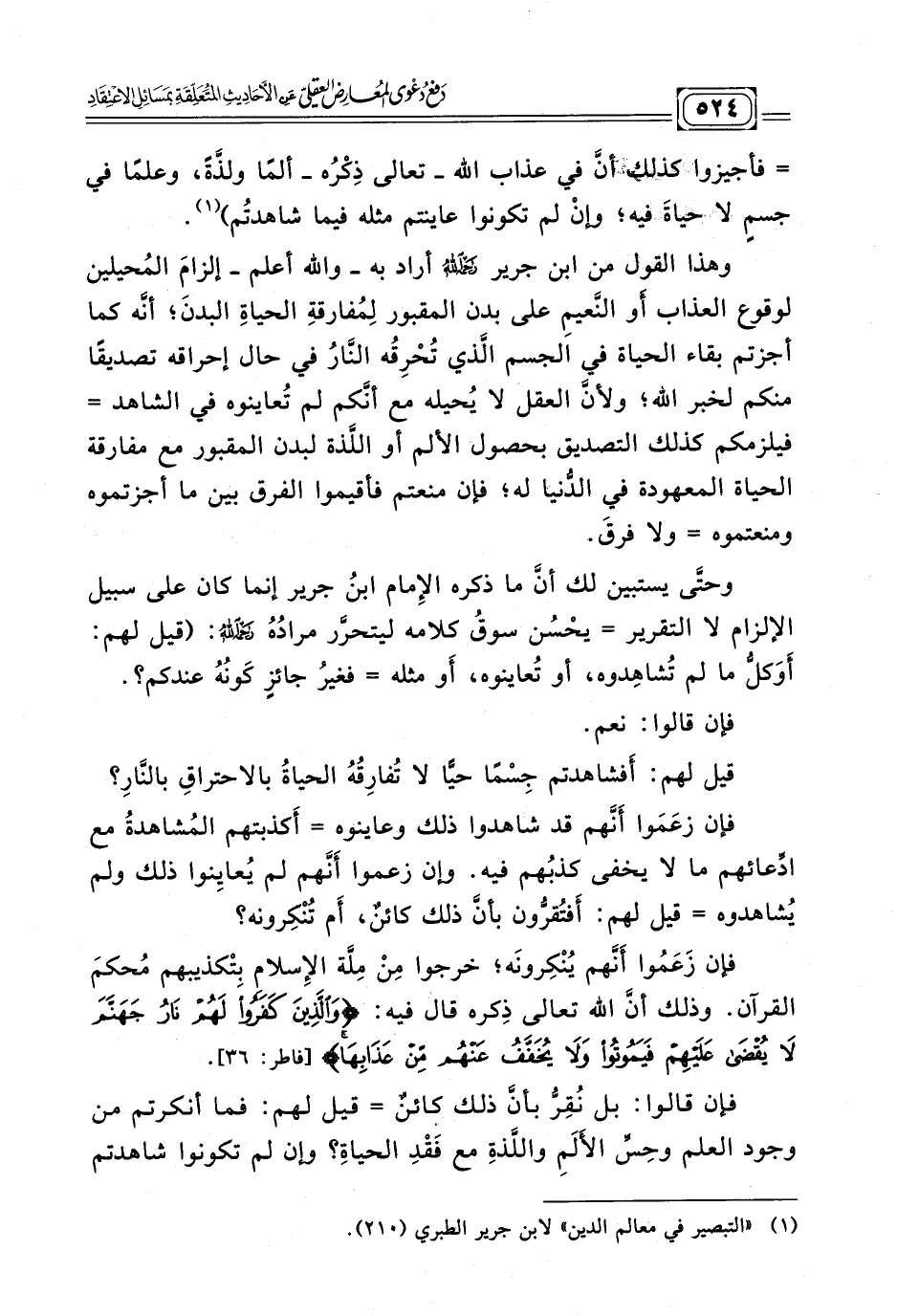 (¬١) "التبصير في معالم الدين"لابن جرير الطبري (٢١٠) .