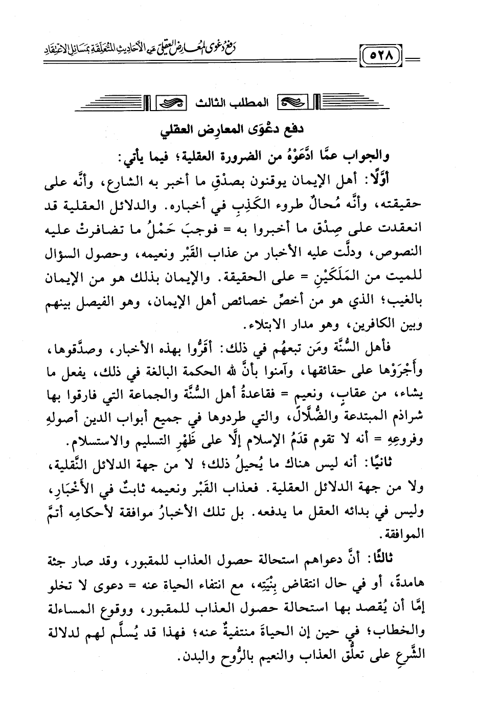المطلب الثالث: نَقْضُ دعْوَى المعارِض العقلي: