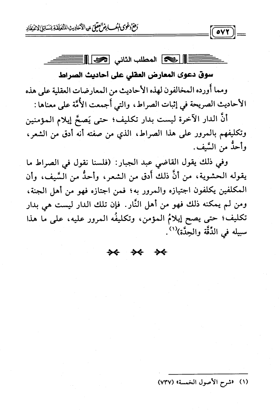 فهذان الاعتراضان هما مجمل الاعتراضات العقلية المَسُوقَة على أحاديث الصراط.] [*]