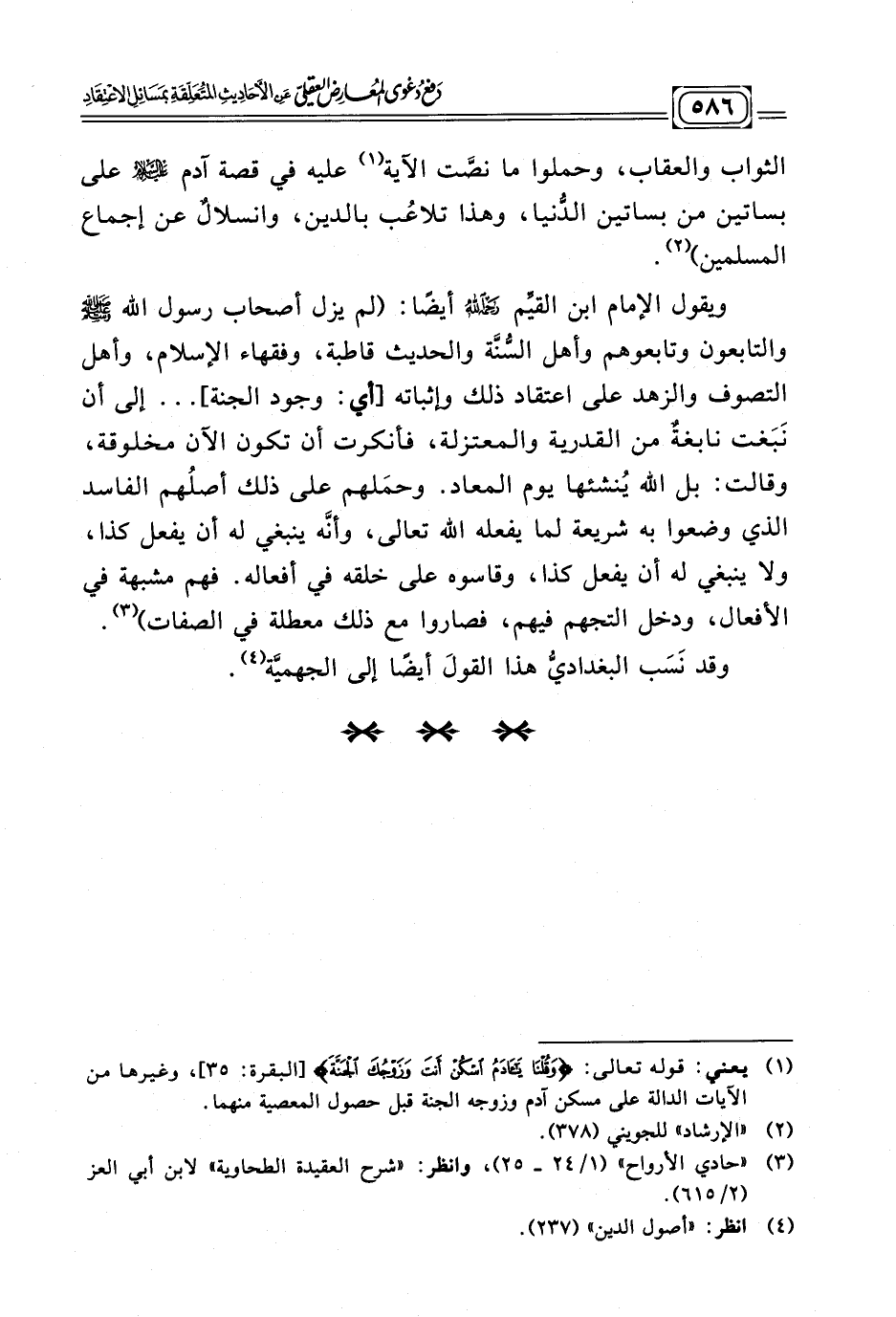 (¬٣) "حادي الأرواح" (١/ ٢٤ - ٢٥) , وانظر:"شرح العقيدة الطحاوي"لابن أبي العز (٢/ ٦١٥) .