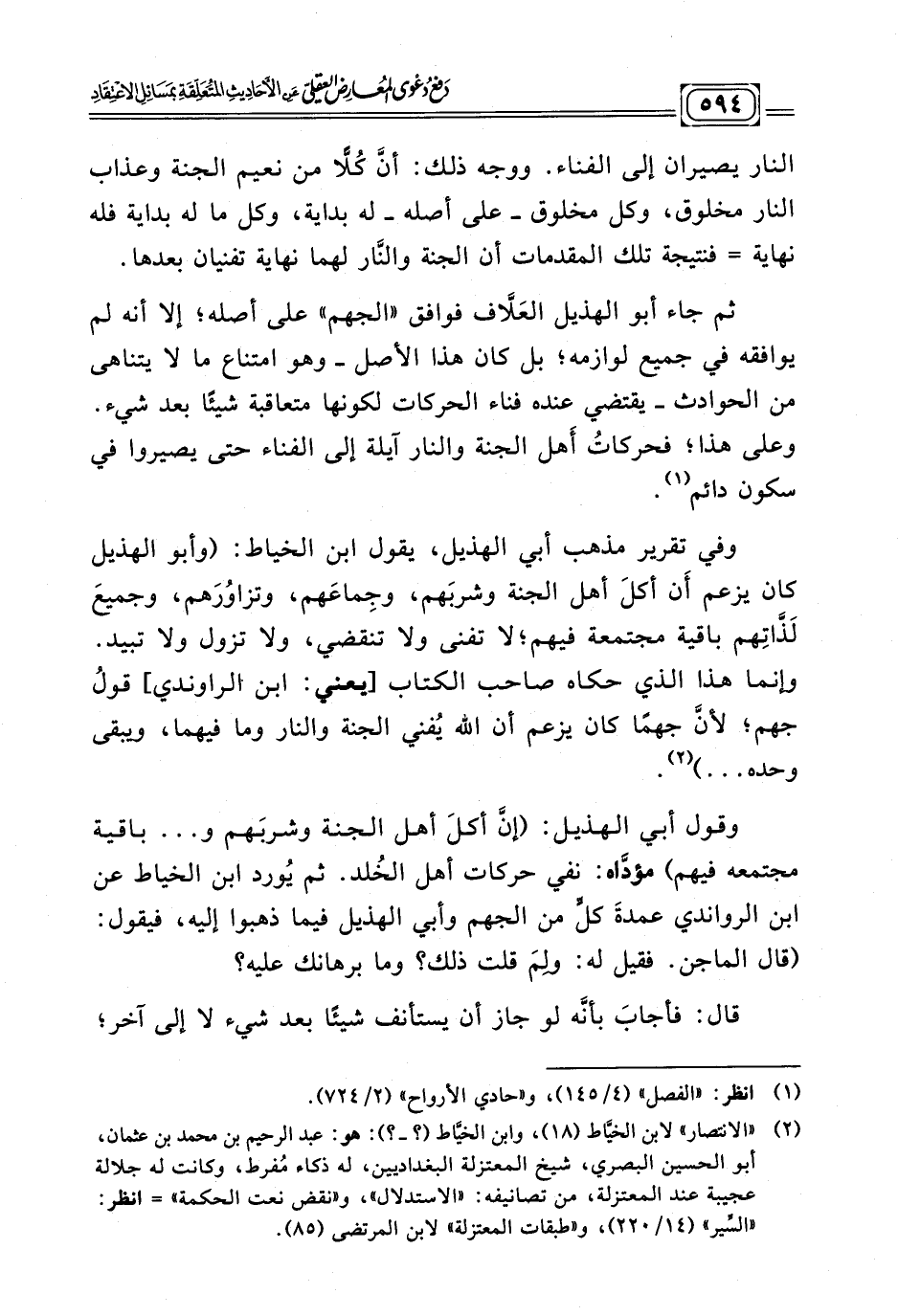 (¬٣) "الانتصار"لابن الخيَّاط (١٨) وابن الخيَّاط (؟ -؟):هو عبدالرحيم بن محمد بن عثمان، أبو الحسين البصري، شيخ المعتزلة البغداديين، له ذكاء مُفرط، وكانت له جلالة عجيبة عند المعتزلة، من تصانيفه: "الاستدلال"، و"نقض نعت الحكمة" =انظر:"السِّير" (١٤/ ٢٢٠)، و"طبقات المعتزلة" لابن المرتضى (٨٥) .