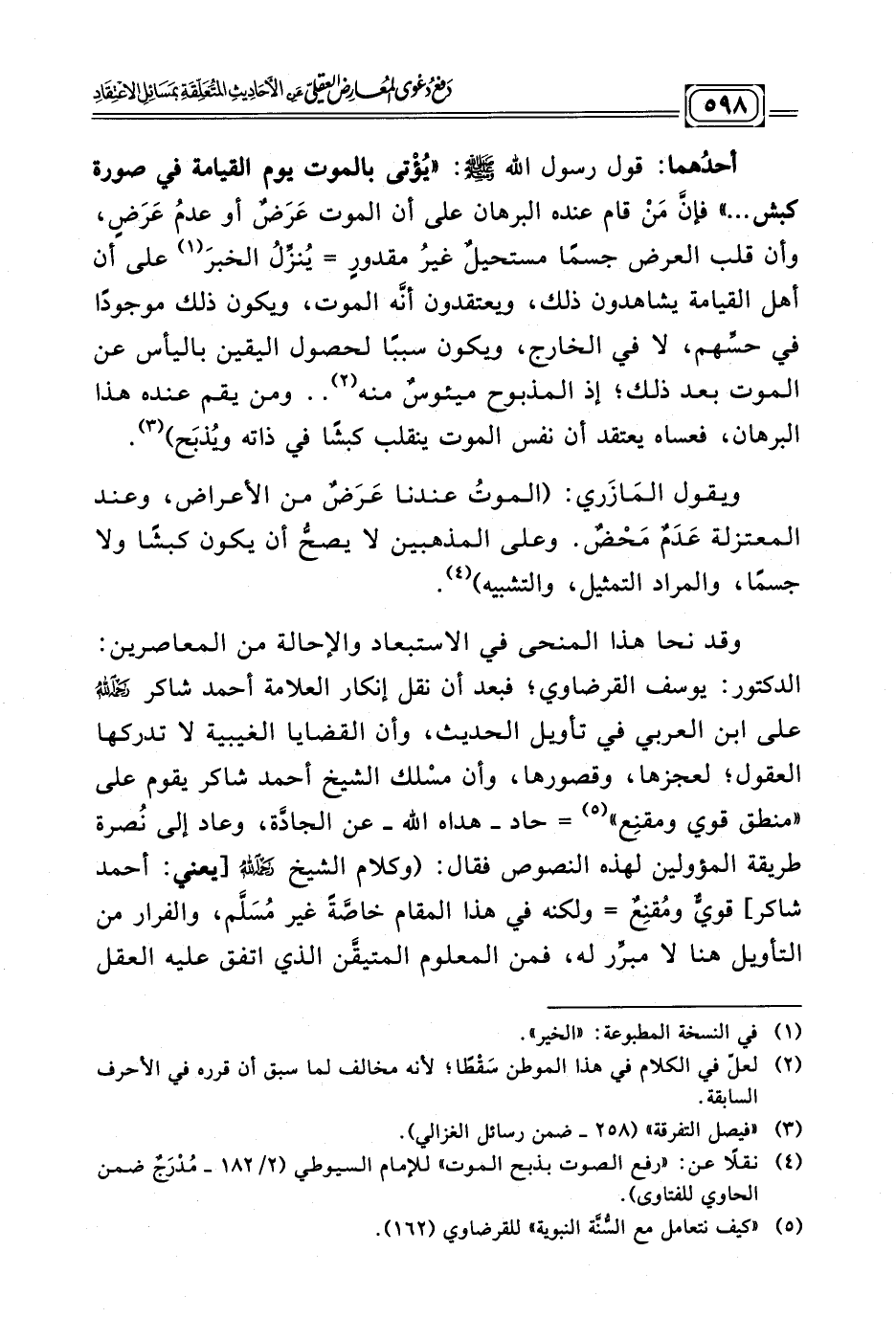 (¬٤) نقلًا عن:"رفع الصوت بذبح الموت"للإمام السيوطي (٢/ ١٨٢ - مُدْرَجٌ ضمن الحاوي للفتاوي) .
