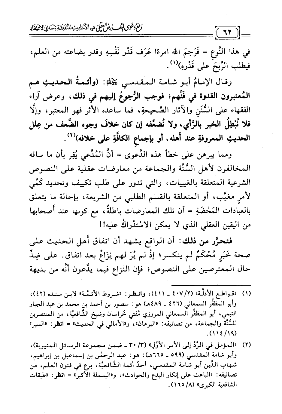 كتاب دفع دعوى المعارض العقلي عن الأحاديث المتعلقة بمسائل الاعتقاد