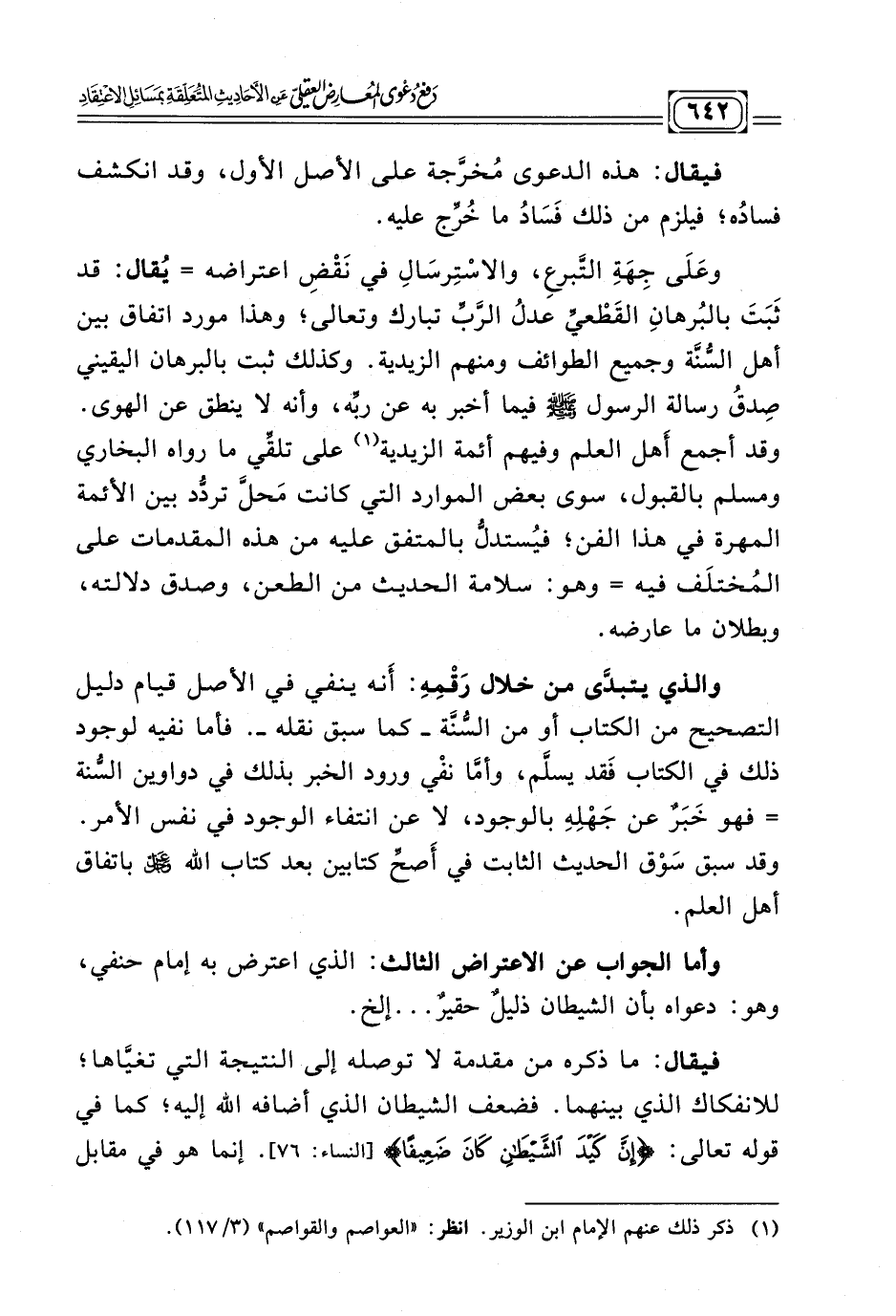 كتاب دفع دعوى المعارض العقلي عن الأحاديث المتعلقة بمسائل الاعتقاد