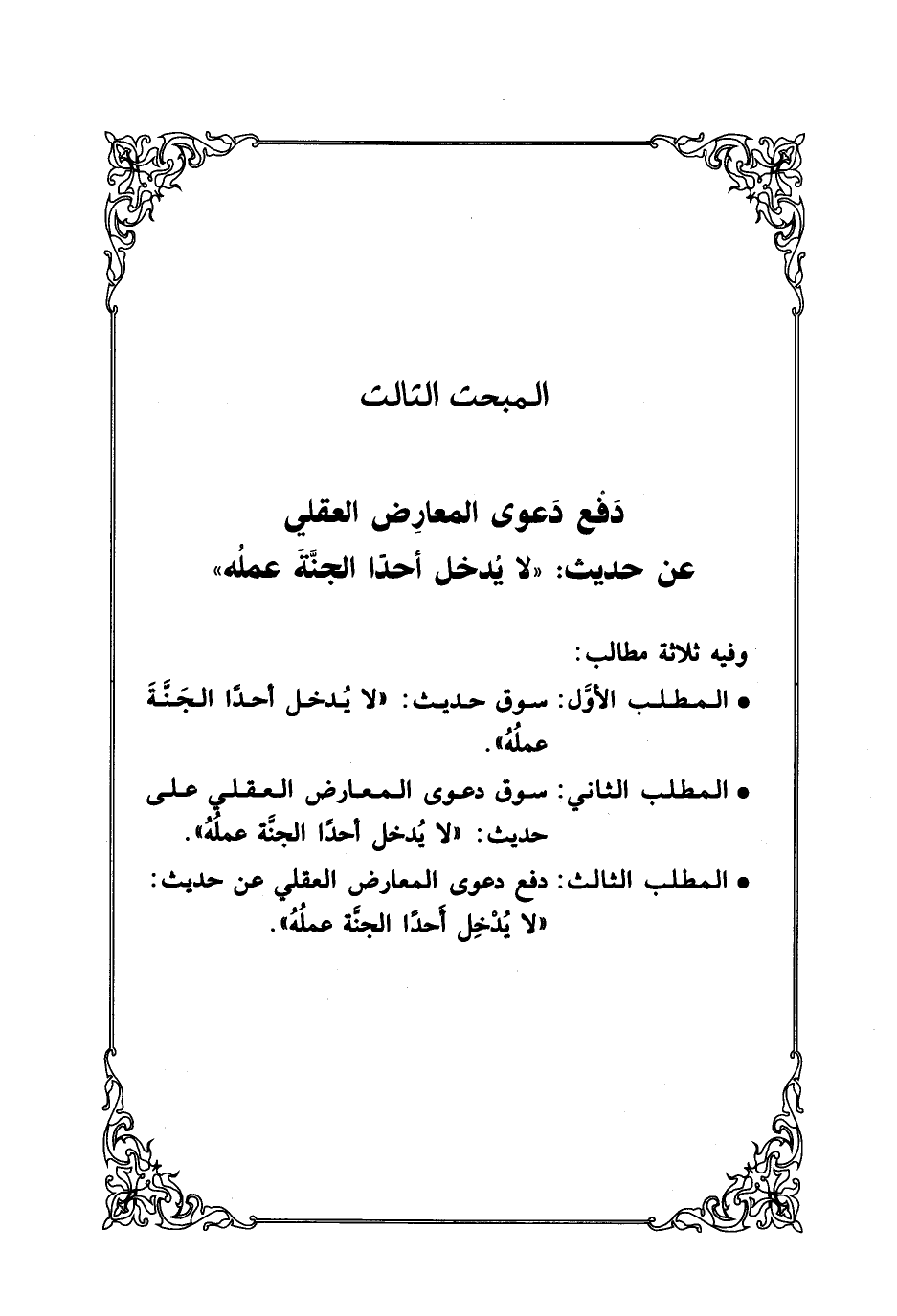 المبحث الثالث دَفْع دَعوى المعارِض العقلي عن حديث: (لا يُدخل أحدًا الجنَّة عمله)