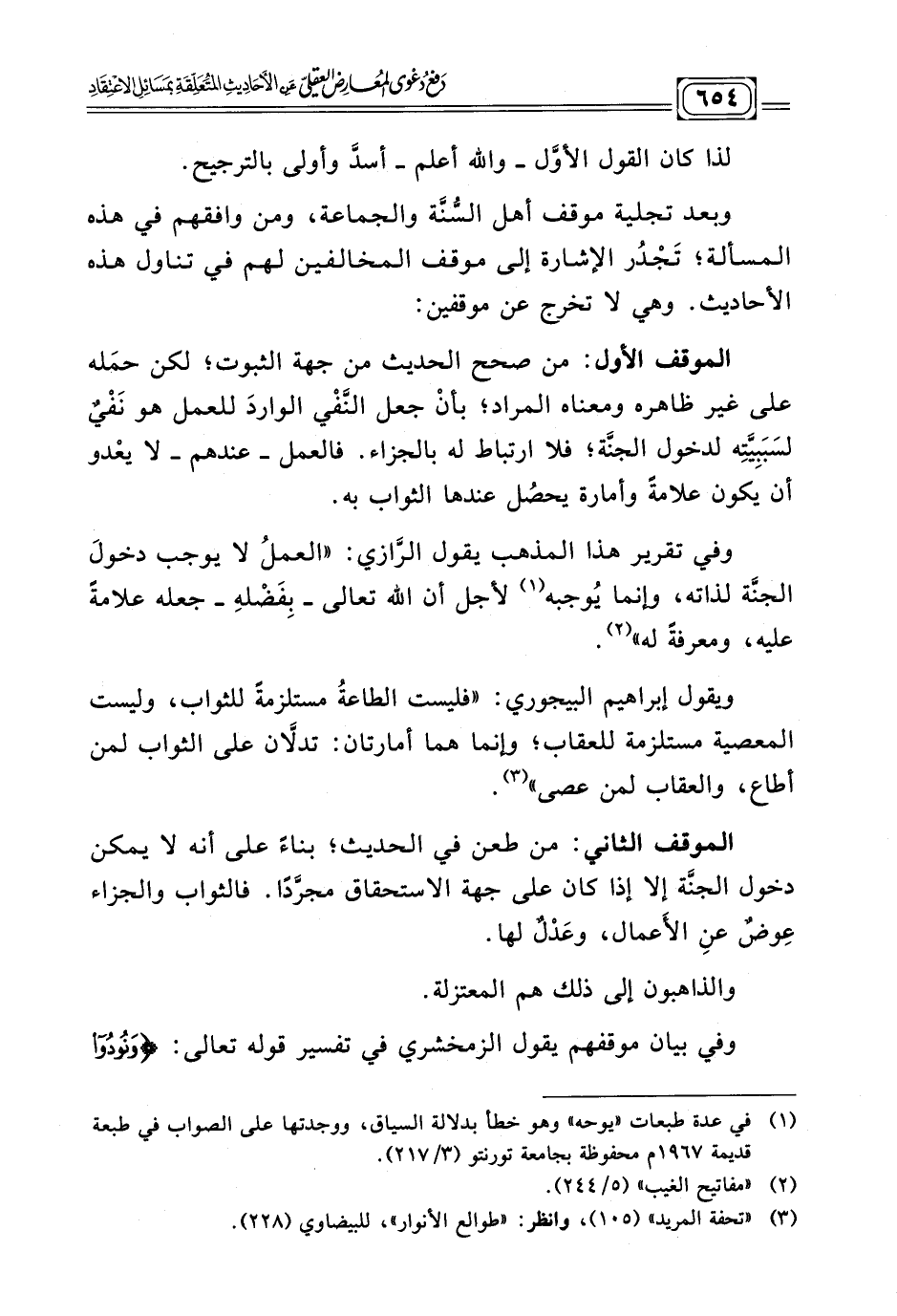 (¬٢) "تحفة المريد" (ص ١٠٥) وانظر: "طوالع الأنوار"، للبيضاوي (ص ٢٢٨) .