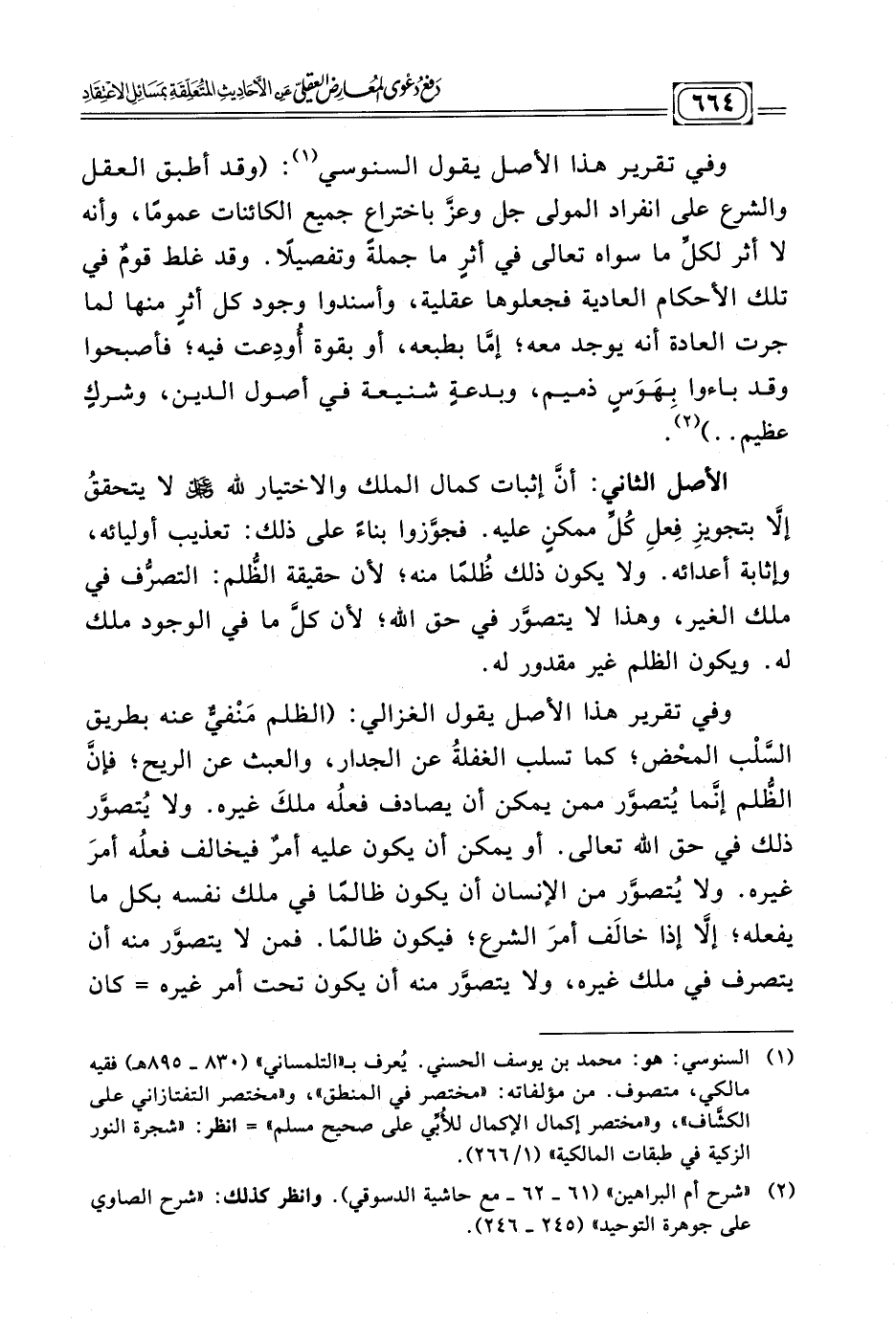 (¬٢) "شرح أم البراهين " (ص ٦١ - ٦٢ - مع حاشية الدسوقي) . وانظر كذلك: "شرح الصاوي على جوهرة التوحيد" (ص ٢٤٥ - ٢٤٦) .