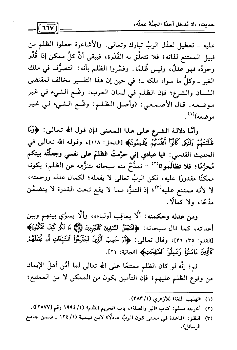(¬٣) انظر: "قاعدة في معنى كون الربّ عادلًا"، لابن تيمية (١/ ١٢٤ - ضمن جامع الرسائل) .