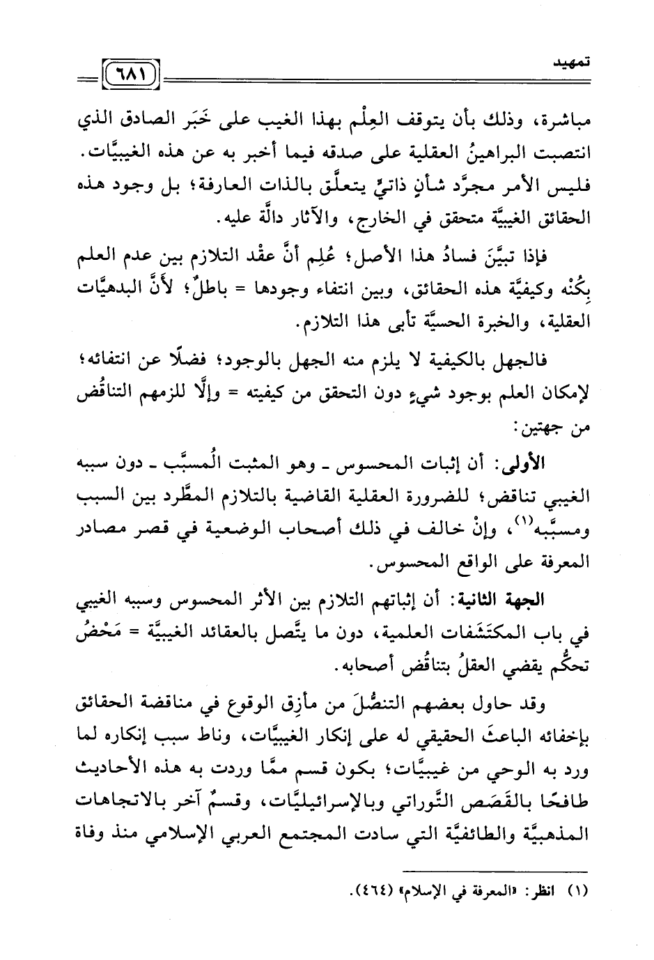 (¬١) انظر: " المعرفة في الإسلام" (٤٦٤) .