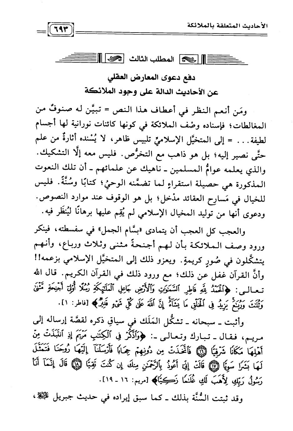 المطلب الثالث: دفع دعوى المعارض العقلي عن الأحاديث الدالة على وجود الملائكة:
