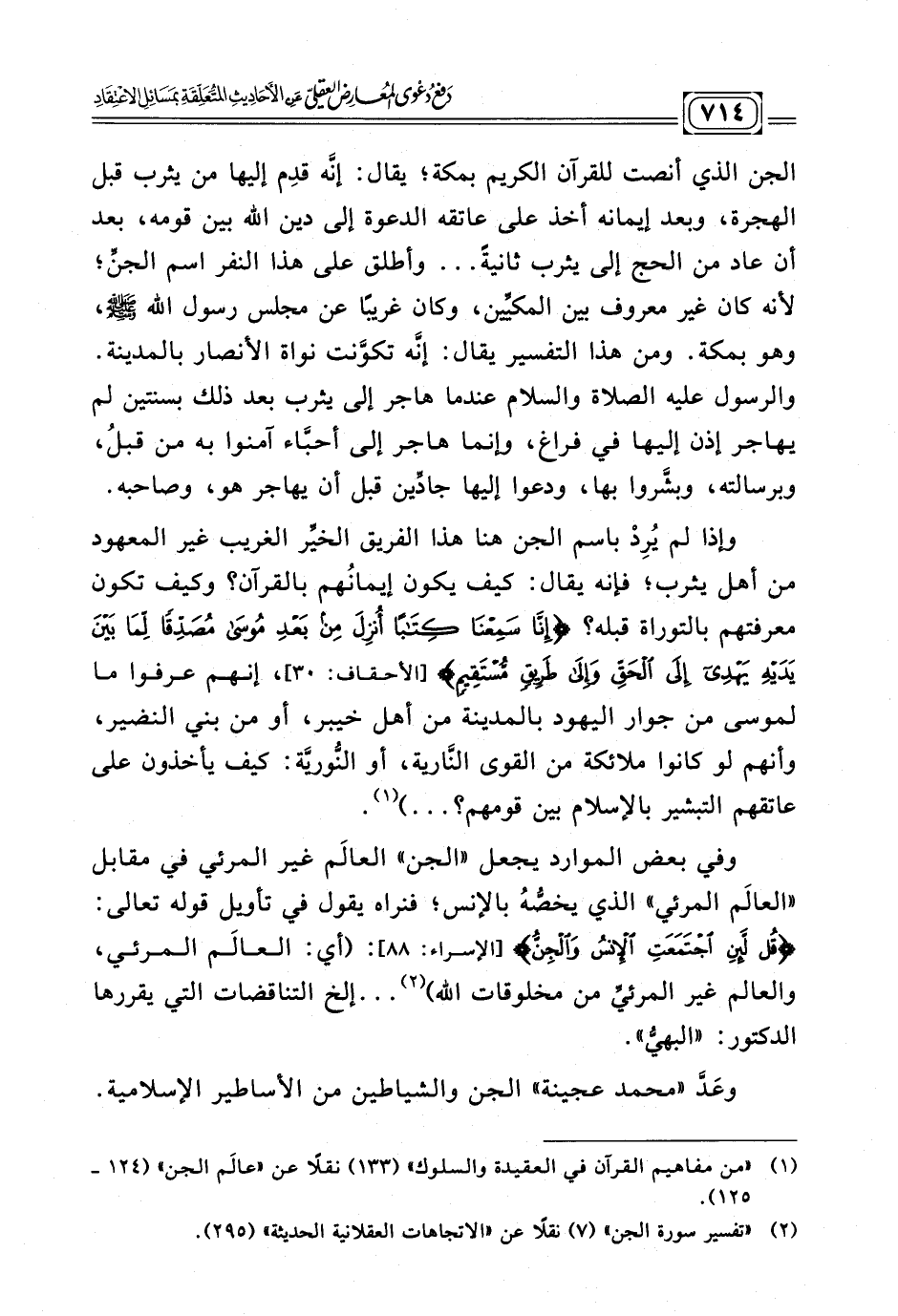 (¬٢) "تفسير سورة الجن" (ص ٧) نقلًا عن "الاتجاهات العقلانية الحديثة" (ص ٢٩٥) .