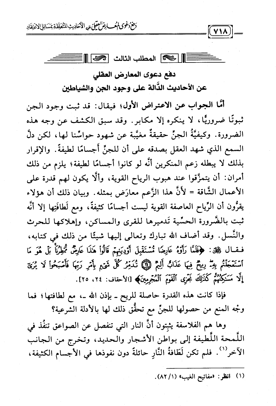 المطلب الثالث: دفع دعوى المعارض العقلي عن الأحاديث الدَّالة على وجود الجن والشياطين: