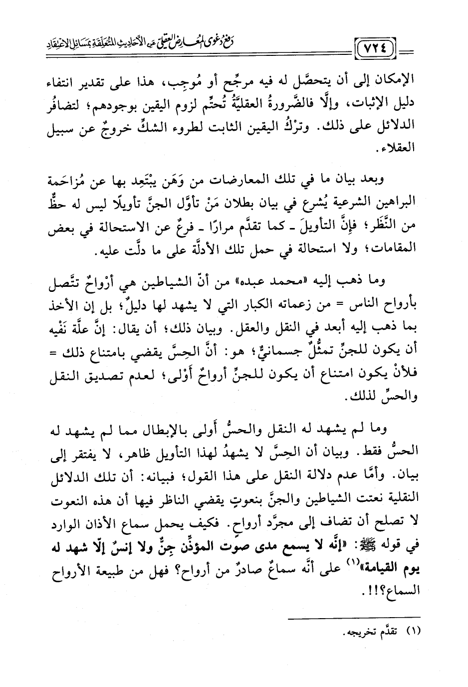 كتاب دفع دعوى المعارض العقلي عن الأحاديث المتعلقة بمسائل الاعتقاد