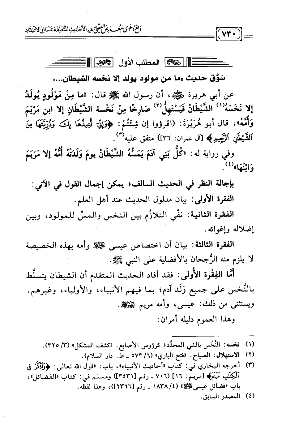 المطلب الأول: سَوْق حديث (ما من مولود يولد إلا نخسه الشيطان .. ):