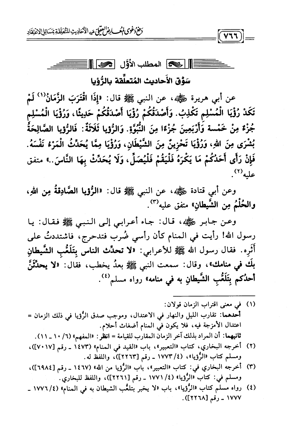 (¬٤) رواه مسلم كتاب "الرُّؤيا" باب "لا يخبر بتلعّب الشيطان به في المنام" (٤/ ١٧٧٦ - ١٧٧٧ - رقم [٢٢٦٨]).
