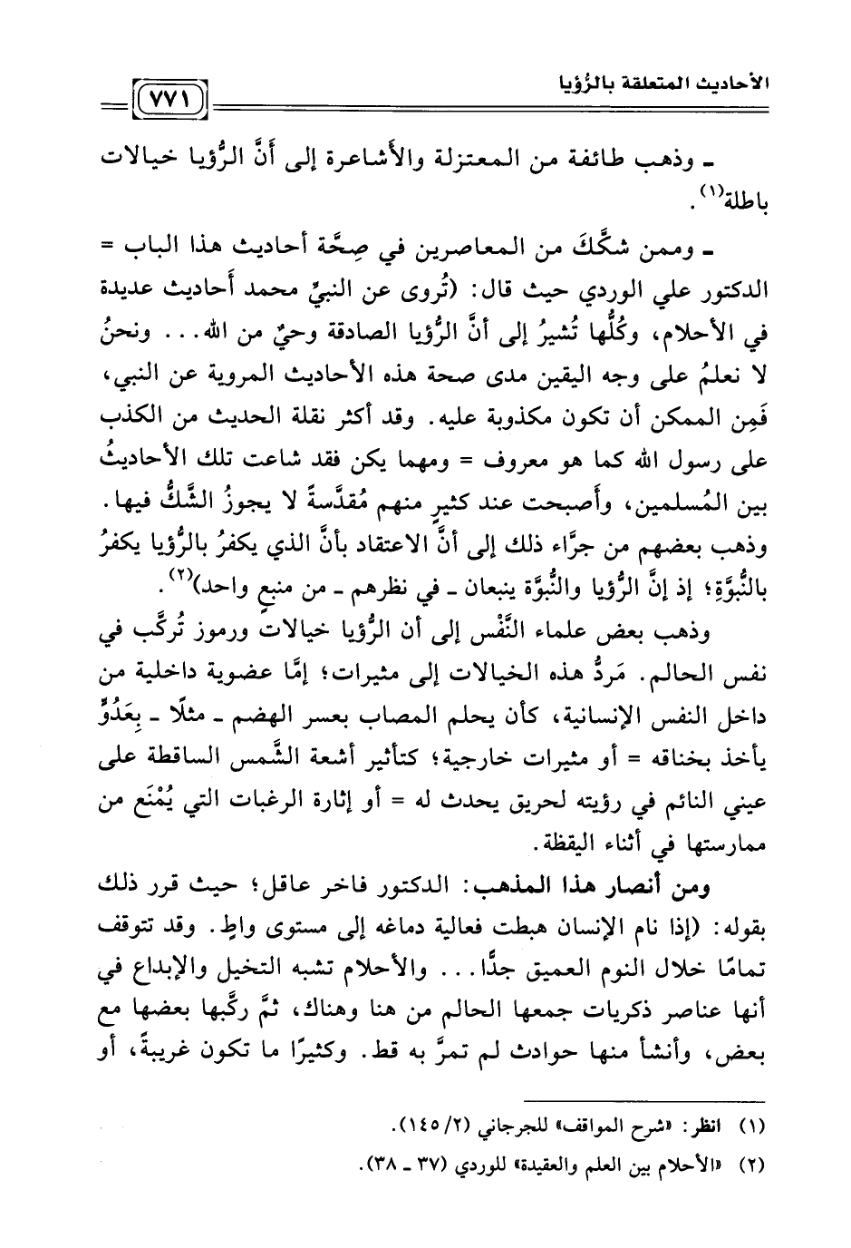 (¬٢) "الأحلام بين العلم والعقيدة" للوردي (٣٧ - ٣٨) .