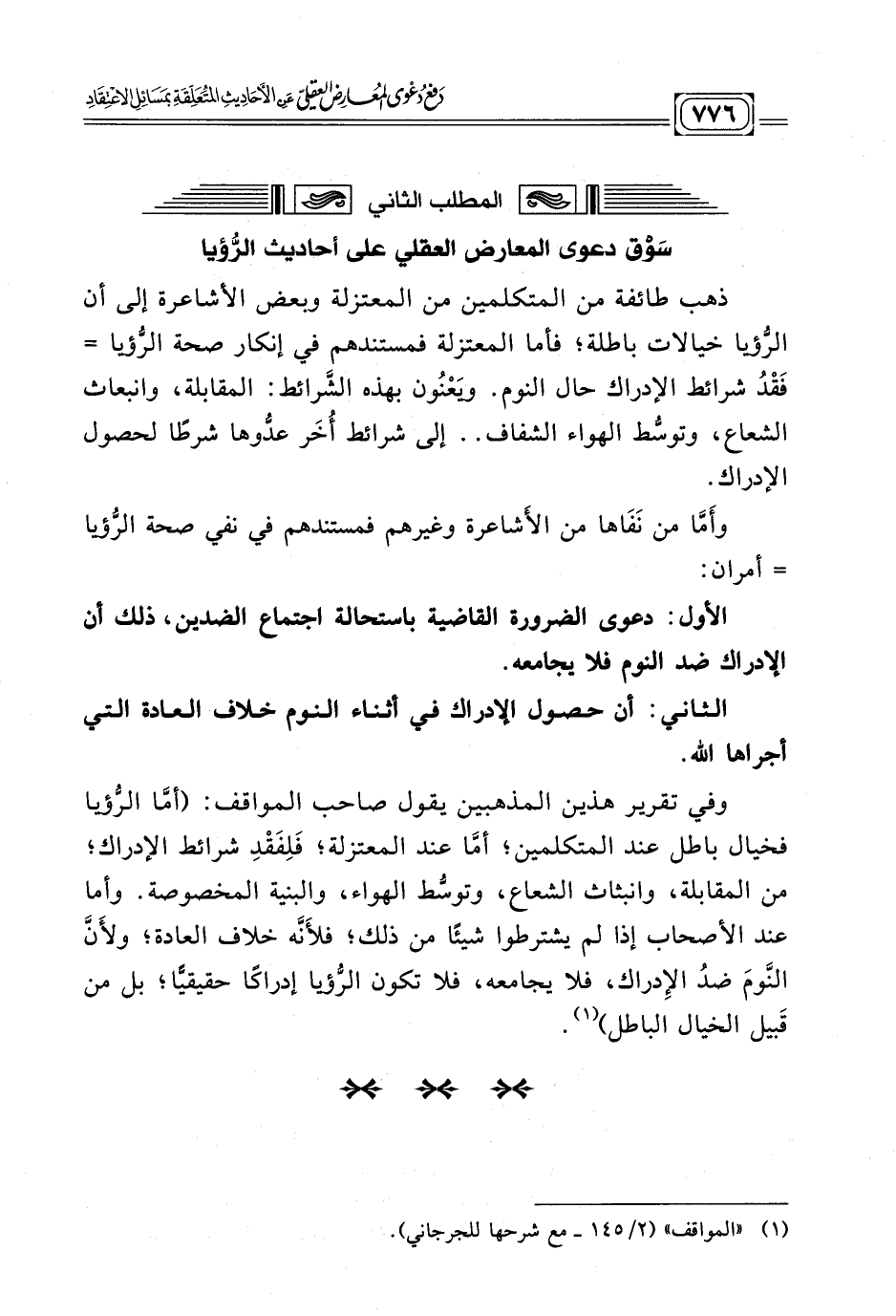 (¬١) "المواقف" (٢/ ١٤٥ - مع شرحها للجرجاني).
