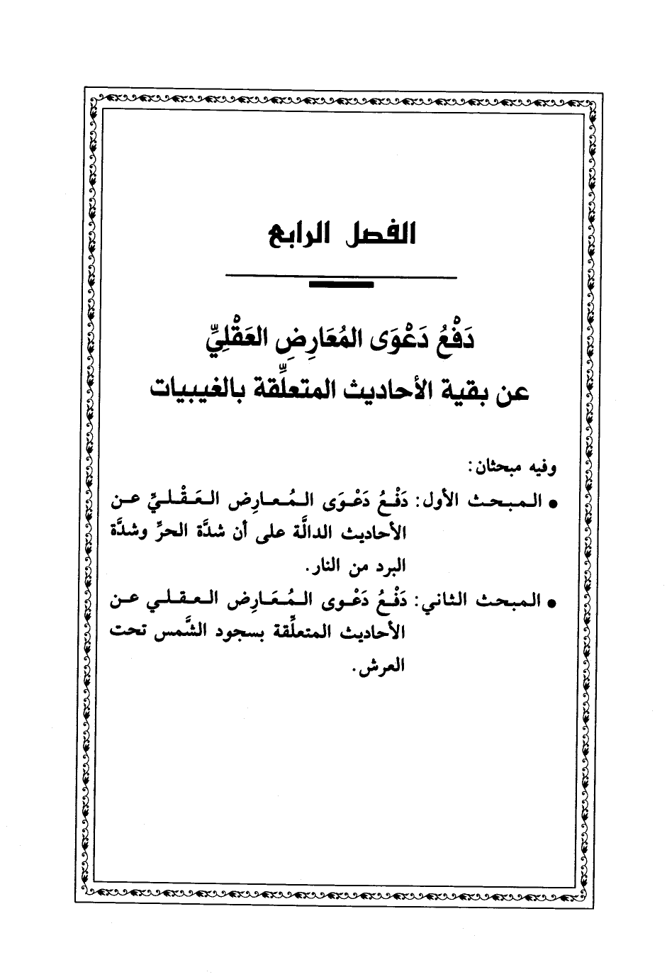 الفصل الرابع دَفْعُ دَعْوَى المُعَارِضِ العَقْلِيِّ عن بقية الأحاديث المتعلّقة بالغيبيات