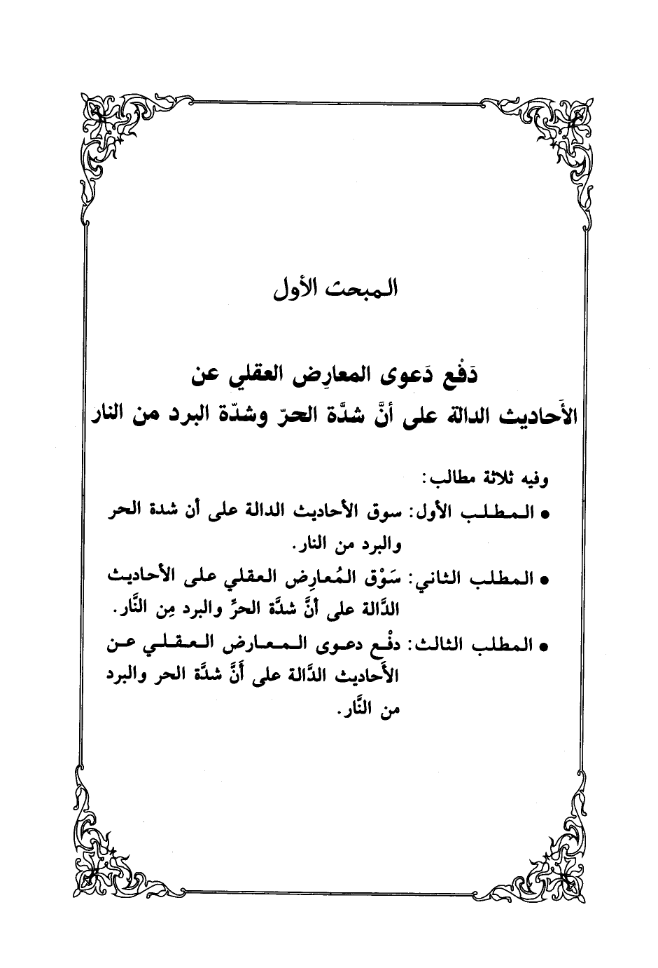 المبحث الأول دَفْع دَعوى المعارِض العقلي عن الأَحاديث الدالة عن: أنّ شدّة الحرّ وشدّة البرد من النار