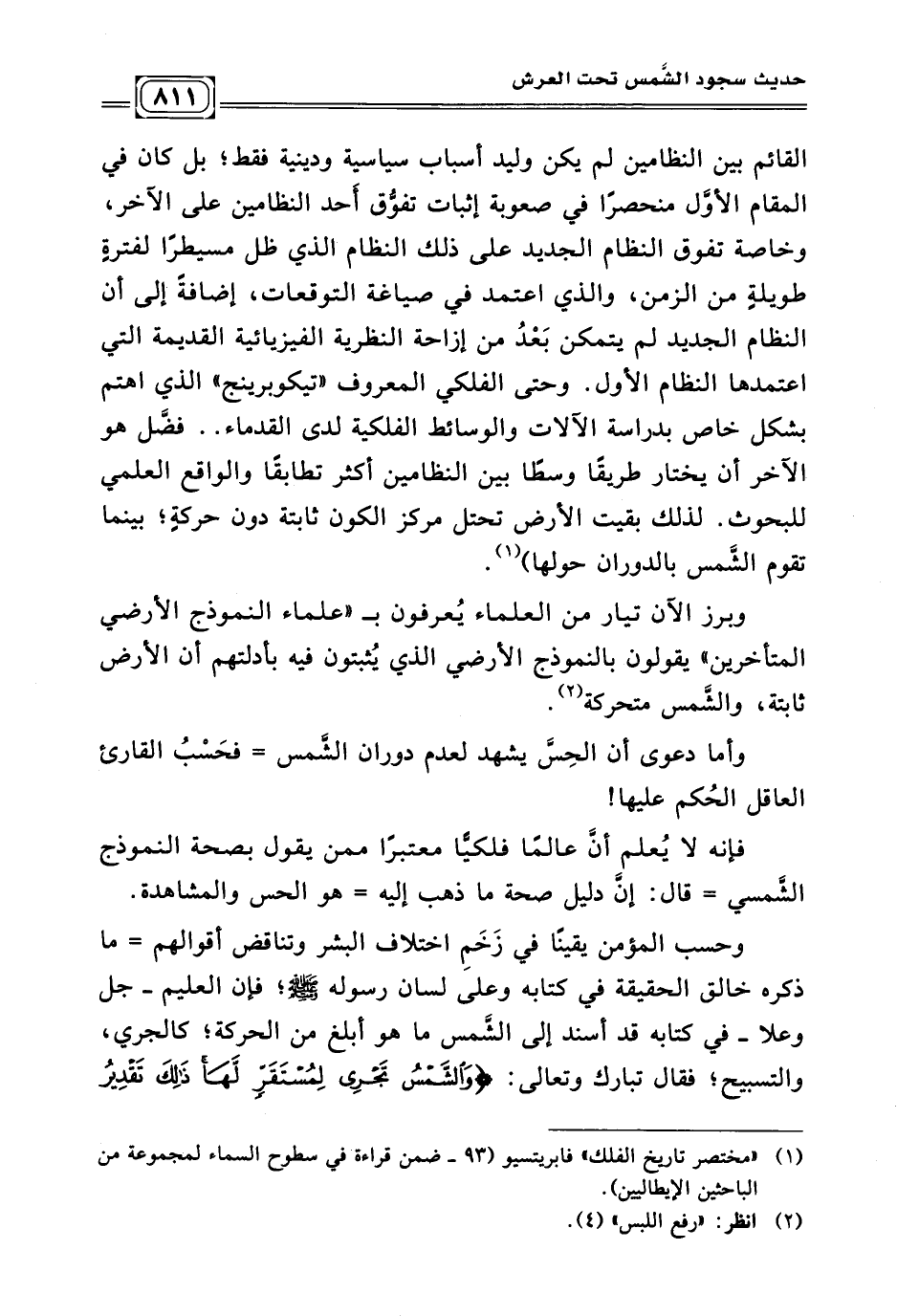 وأما دعوى أن الحِسّ يشهد لدوران الشَّمس = فحَسْبُ القارئ العاقل الحُكم عليها!
