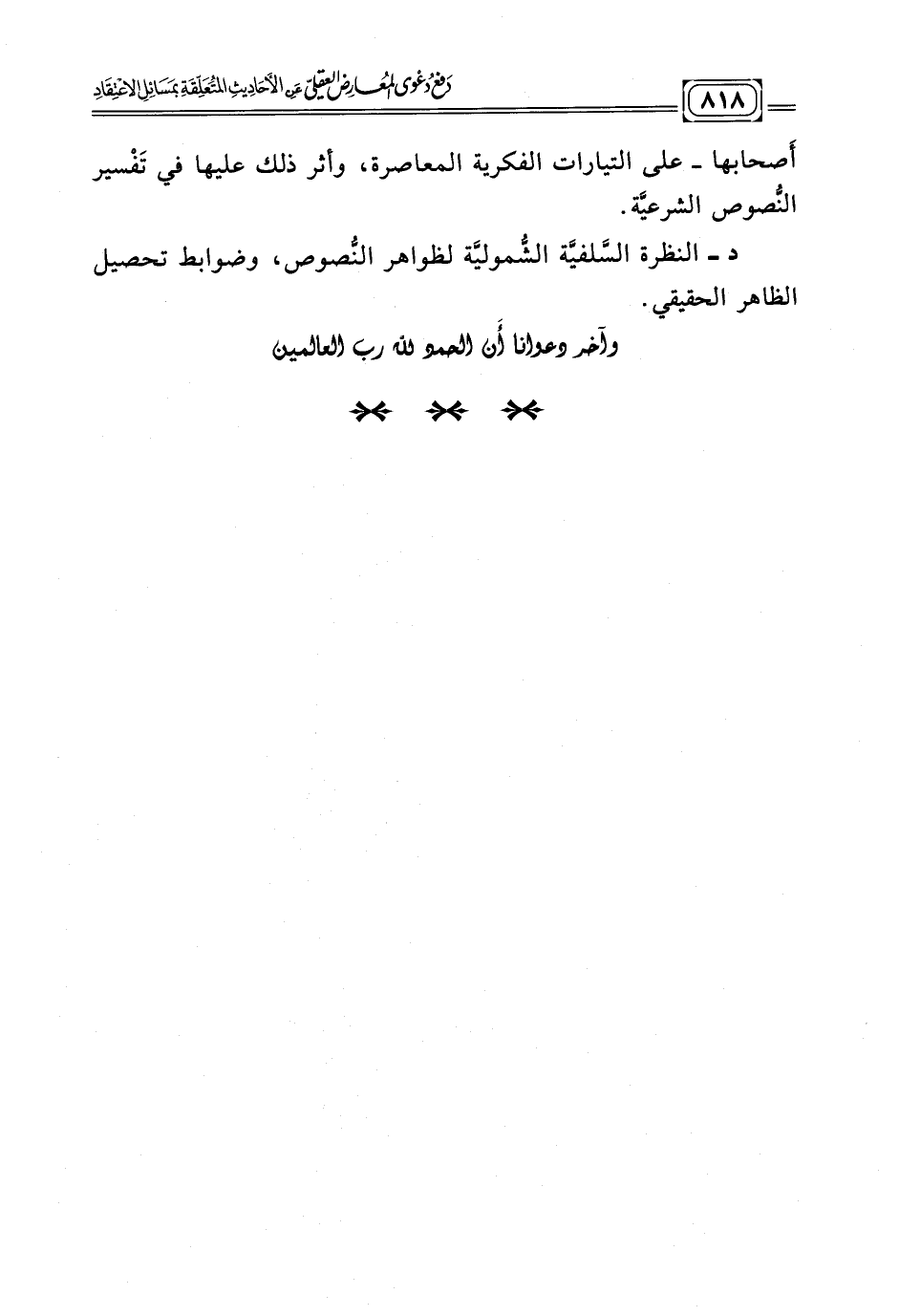 كتاب دفع دعوى المعارض العقلي عن الأحاديث المتعلقة بمسائل الاعتقاد