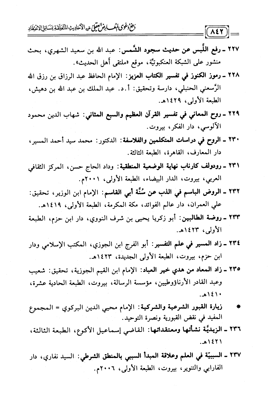 ٢٣٢ - الروض الباسم في الذب عن شئة أبي القاسم: الإمام ابن الوزير، تحقيق: علي العمران، دار عالم الفوائد، مكة المكرمة، الطبعة الأولى، ١٤١٩ ه.