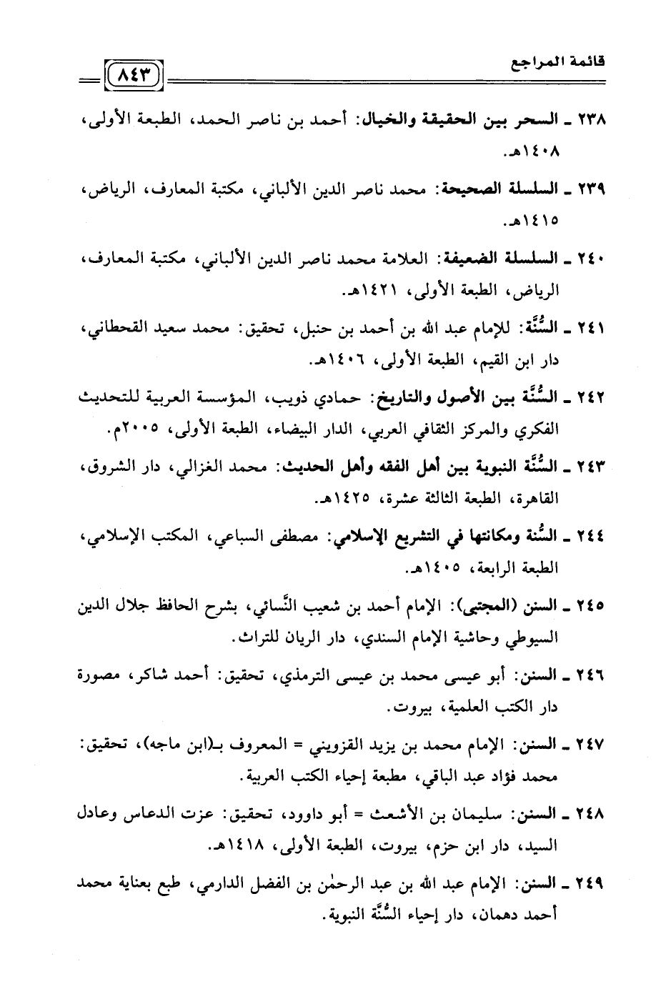٢٤٣ - السُّنَّة النبوية بين أهل الفقه وأهل الحديث: محمد الغزالي، دار الشروق، القاهرة، الطبعة الثالثة عشرة، ١٤٢٠ ه.