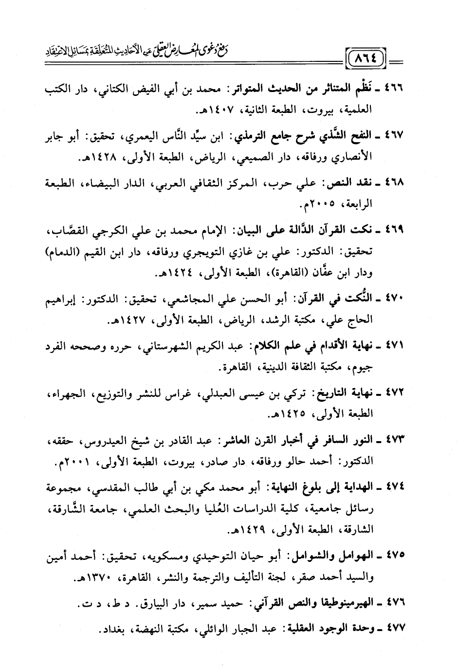 ٤٧١ - نهاية الأقدام في علم الكلام: عبد الكريم الشهرستاني، حرره وصححه الفرد جيوم، مكتبة الثقافة الدينية، القاهرة.