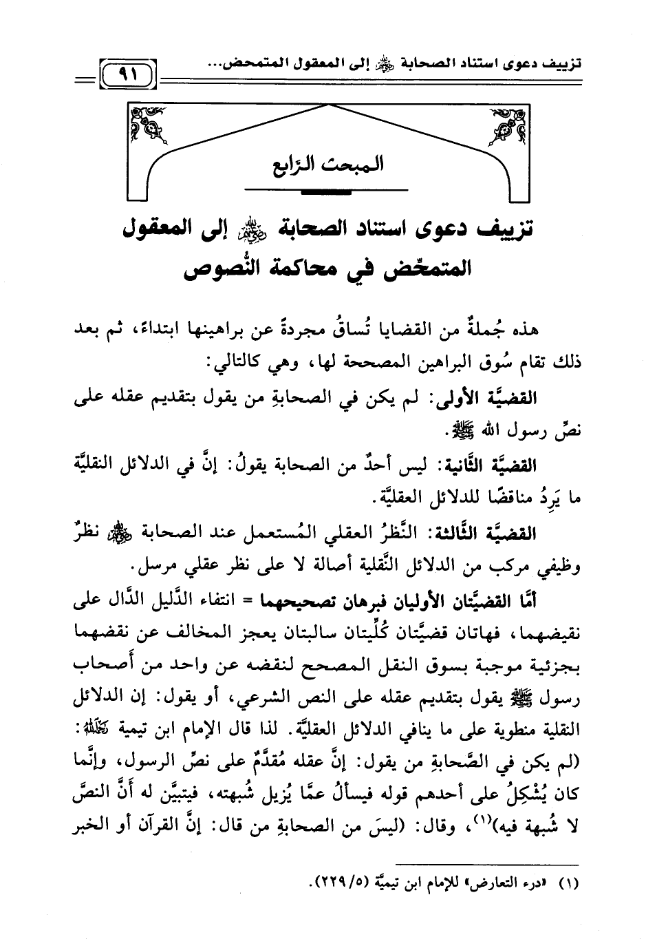 المبحث الرَّابع تزييف دعوى استناد الصحابة - رضي الله عنهم - إلى المعقول المتمحض في محاكمة النُّصوص