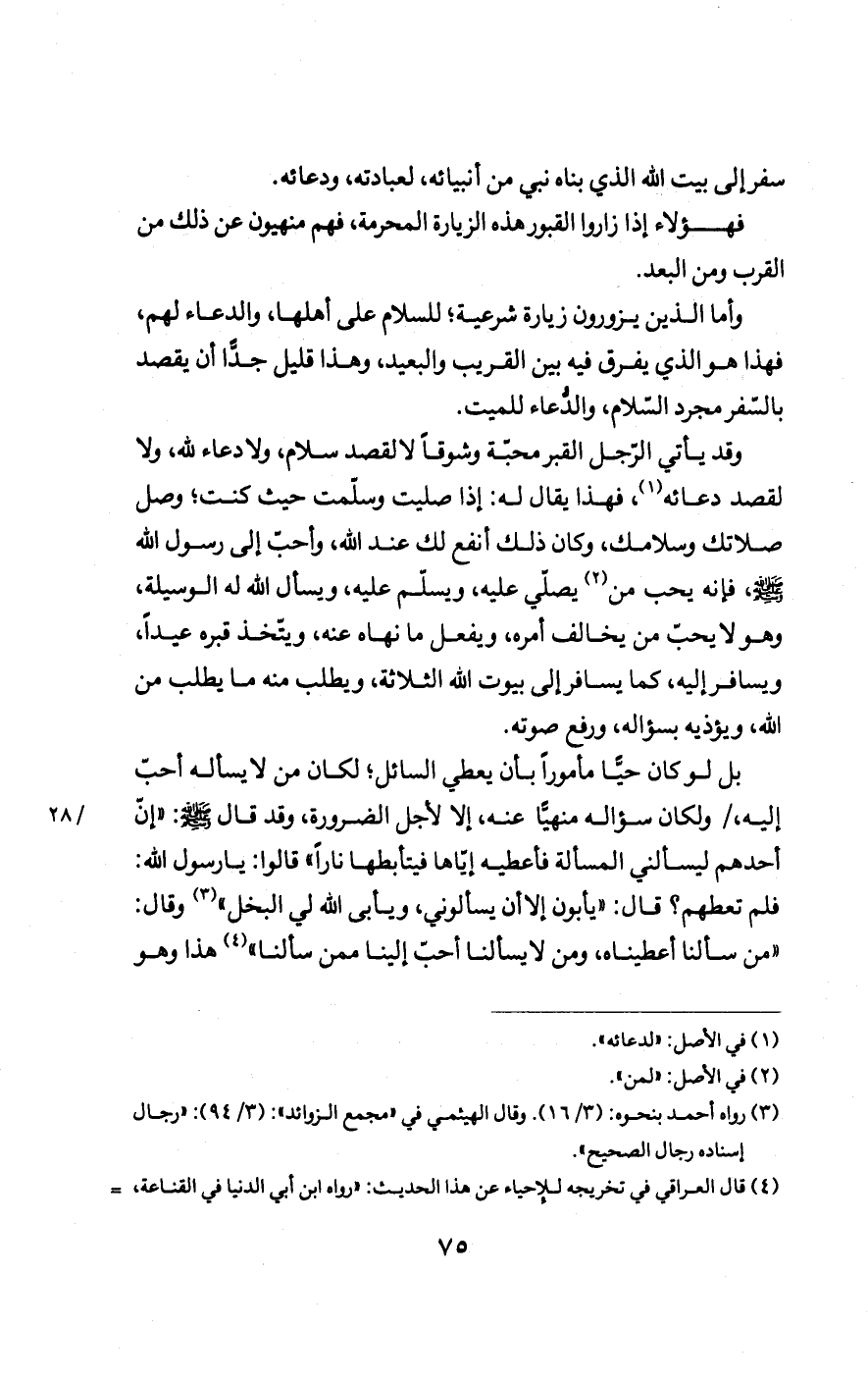 بل لو كان حيًّا مأمورًا بأن يعطي السائل؛ لكان من لا يسأله أحبّ إليه، /28أ/ ولكان سؤاله منهيًّا عنه، إلا لأجل الضرورة، وقد قال صلى الله عليه وسلم: «إِنَّ أَحَدَهُمْ لَيَسْأَلُنِي الْمَسْأَلَةَ فَأُعْطِيهِ إِيَّاهَا فَيَتَأَبَّطُهَا نَارًا» قَالُوا: يَا رَسُولَ اللَّهِ: فَلِمَ تُعْطِهِمْ؟ قَالَ: «يَأْبَوْنَ إِلَّا أَنْ يَسْأَلُونِي، وَيَأْبَى اللَّهُ لِيَ الْبُخْلَ» وقال: «مَنْ سَأَلَنَا أَعْطَيْنَاهُ، وَمَنْ لَا يَسْأَلُنَا أَحَبُّ إِلَيْنَا مِمَّنْ سَأَلَنَا» هذا وهو