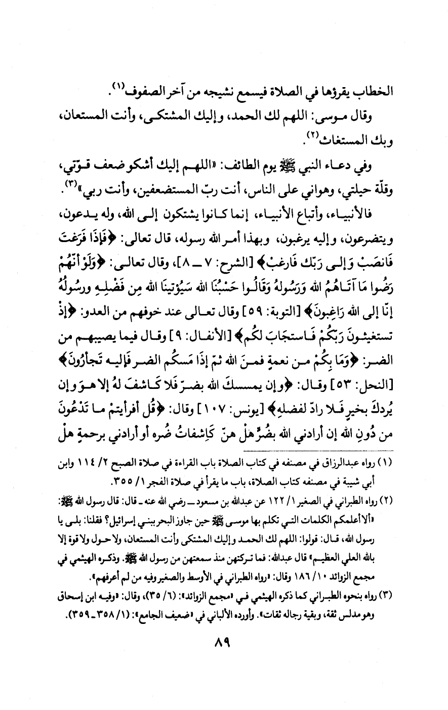 وفي دعاء النبي صلى الله عليه وسلم يوم الطائف: «اللَّهُمَّ إِلَيْكَ أَشْكُو ضَعْفَ قُوَّتِي، وَقِلَّةَ حِيلَتِي، وَهَوَانِي عَلَى النَّاسِ، أَنْتَ رَبُّ الْمُسْتَضْعَفِينَ، وَأَنْتَ رَبِّي» .