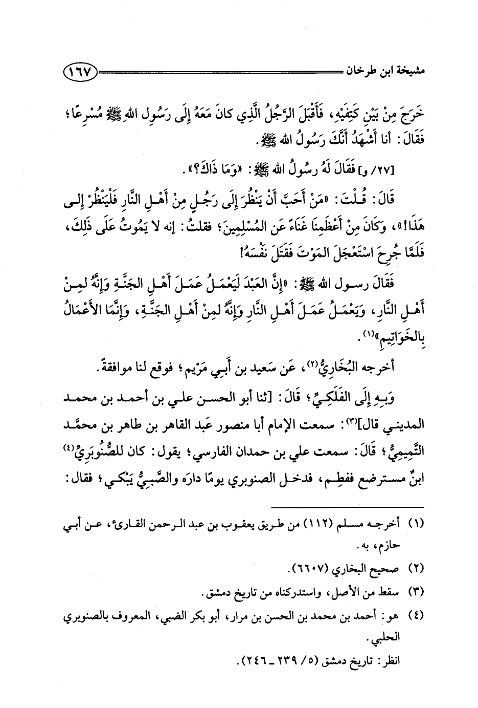 قال: قلت: "من أحب أن ينظر إلى رجل من أهل النار فلينظر إلى هذا! "، وكان من أعظمنا غناء عن المسلمين، فقلت: إنه لا يموت على ذلك، فلما جرح استعجل الموت فقتل نفسه!