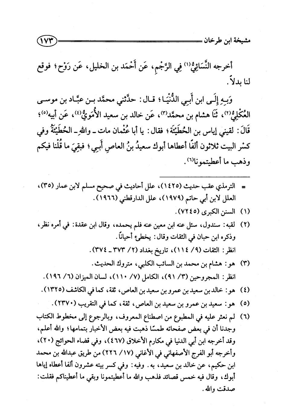 أخرجه النسائي في الرجم، عن أحمد بن الخليل، عن روح، فوقع لنا بدلا.