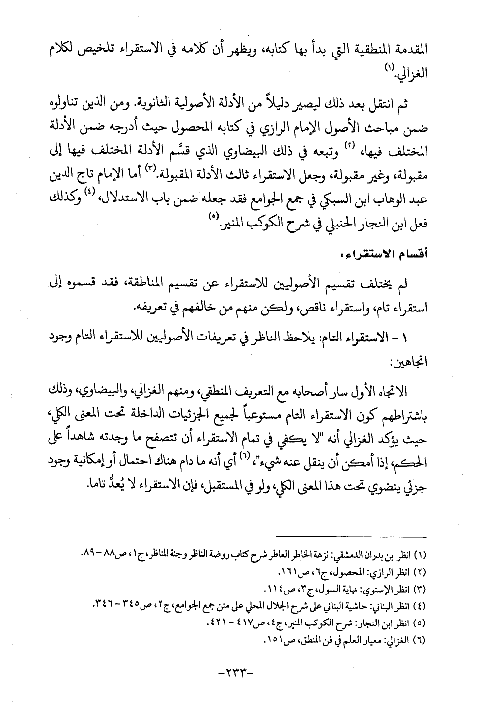المقدمة المنطقية التي بدأ بها كتابه، ويظهر أن كلامه في الاستقراء تلخيص لكلام الغزالي. (¬1)