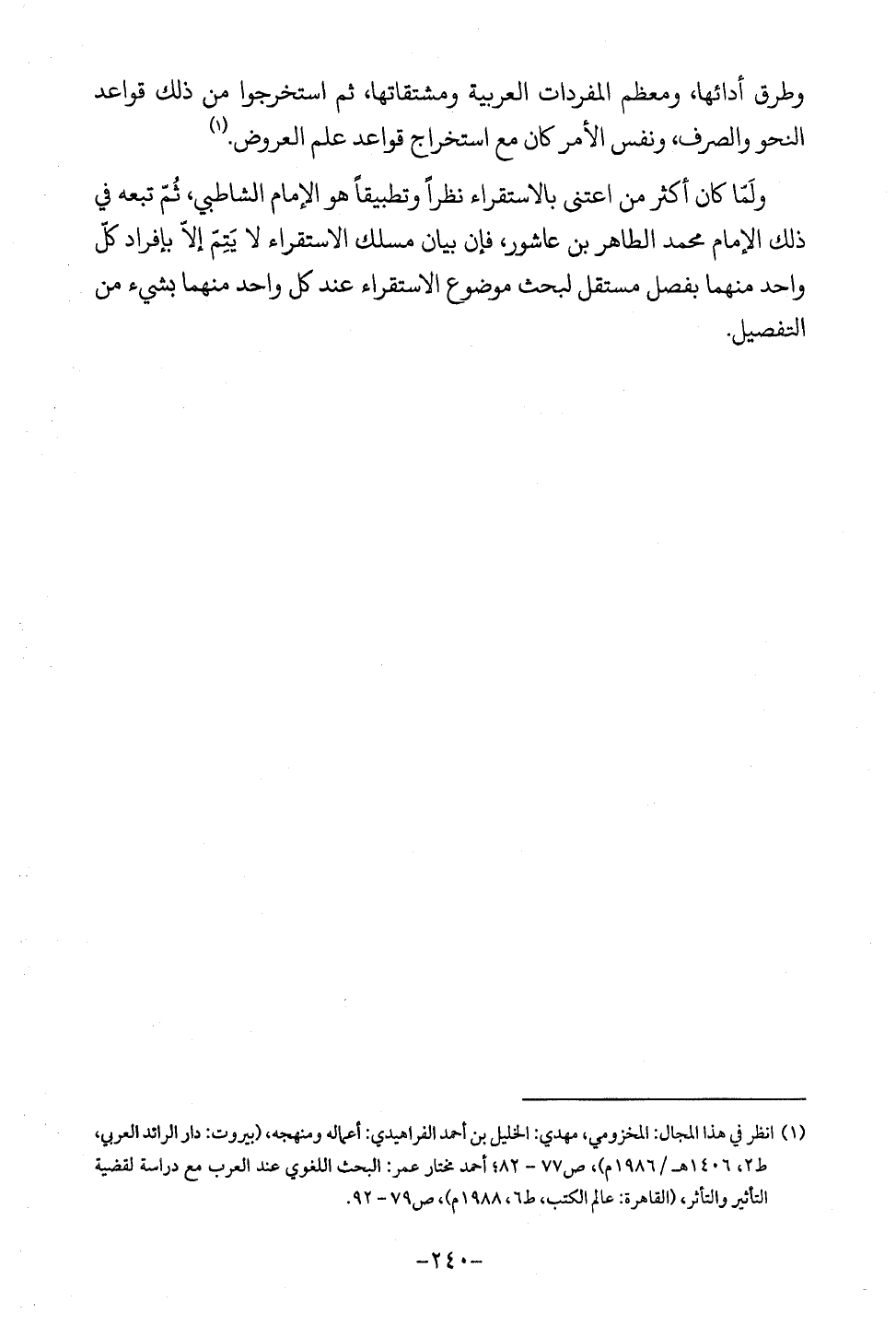 (¬1) انظر في هذا المجال: المخزومي، مهدي: الخليل بن أحمد الفراهيدي: أعماله ومنهجه، (بيروت: دار الرائد العربي، ط 2. 1406 هـ / 1986 م)، ص 77 - 82؛ أحمد مختار عمر: المبحث اللغوي عد العرب مع دراسة لقضية التأثير والتأثر، (القاهرة: عالم الكتب، ط 6، 1988 م)، ص 79 - 92.