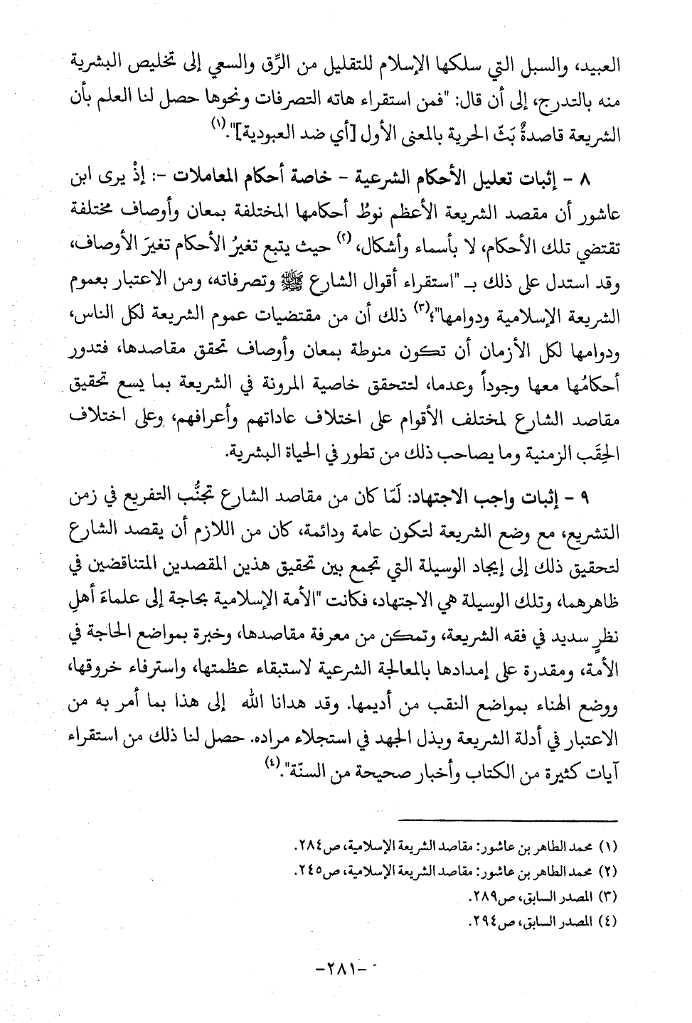 (¬1) محمد الطاهر بن عاشور: مقاصد الشريعة الإِسلامية، ص 284.