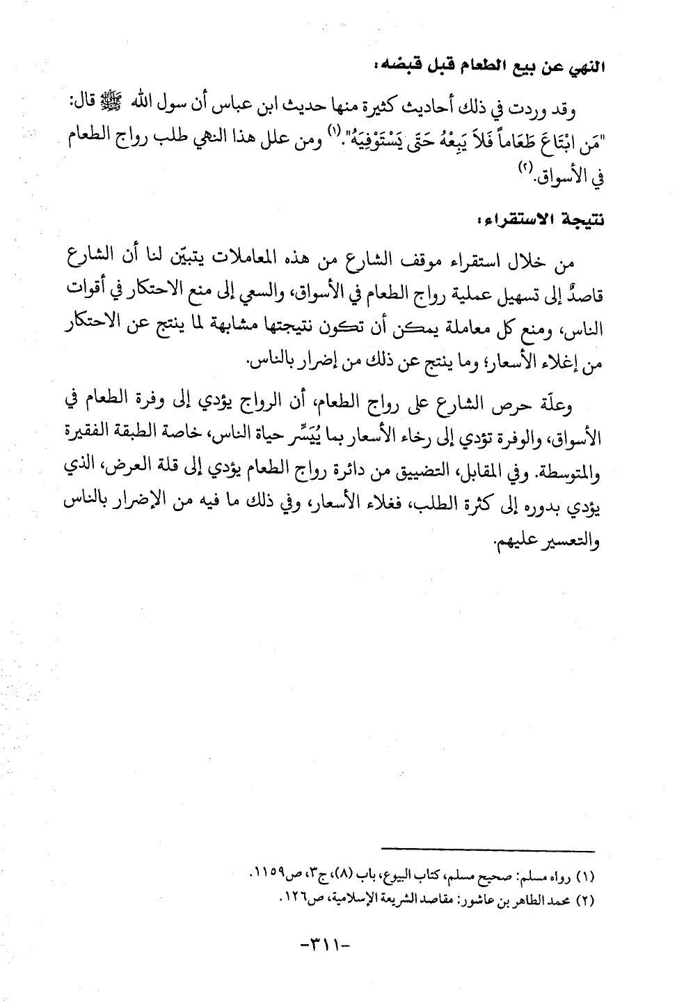 (¬1) رواه مسلم: صحيح مسلم، كتاب البيوع، باب (8)، ج 3، ص 1159.
