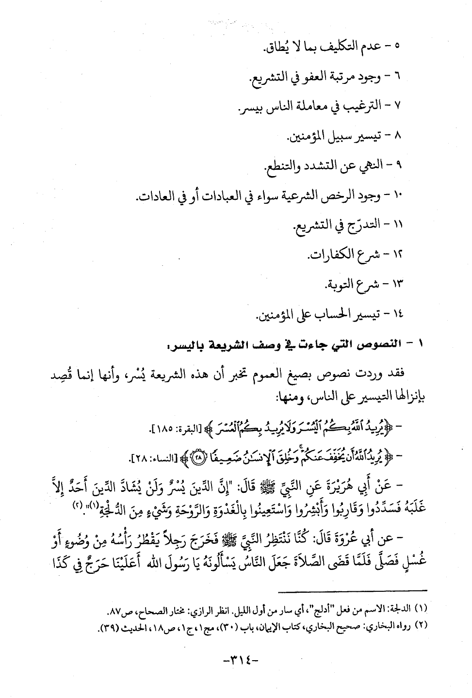 1 - النصوص التي جاءت في وصف الشريعة باليسر: