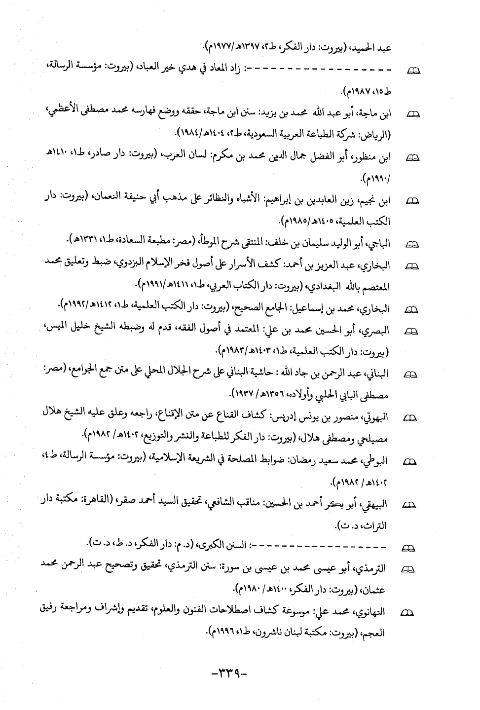 - ابن نجيم، زين العابدين بن إبراهيم: الأشباه والنظائر على مذهب أبي حنيفة النعمان، (بيروت: دار الكتب العلمية، 1405 هـ/ 1985 م).