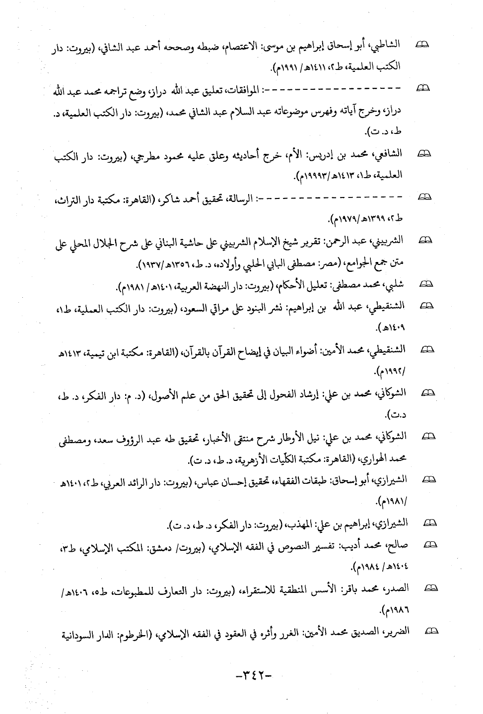 - الشيرازي، إبراهيم بن علي: المهذب، (بيروت: دار الفكر د. ط، د. ت). - صالح، محمد أديب: تفسير النصوص في الفقه الإسلامي، (بيروت /دمشق: المكتب الإِسلامي، ط 3، 1404 هـ/ 1984 م).
