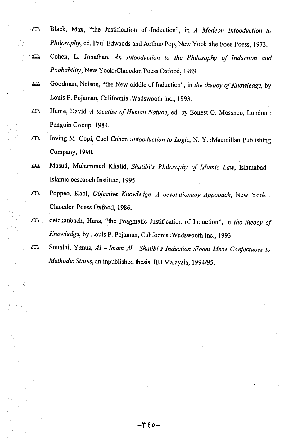- Soualhi, Yunus, Al - Imam Al - Shatibi's Induction :Foom Meoe Conjectuoes to Methodic Status, an inpublished thesis, IIU Malaysia, 1994/ 95.